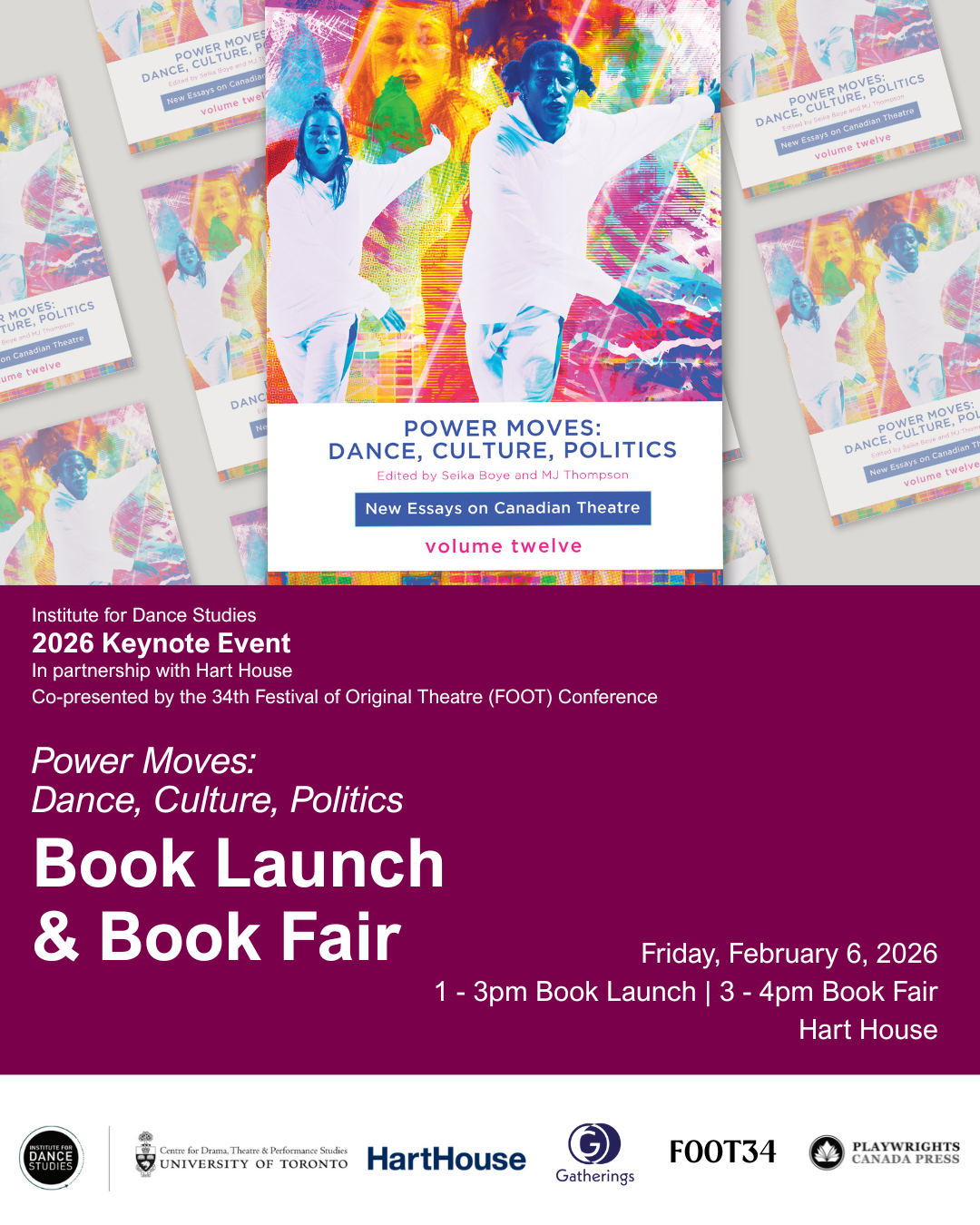 Featuring Seika Boye and MJ Thompson, this event celebrates their essay collection published by Playwrights Canada Press. Stay for the Book Fair and connect with authors and new publications in dance and performance research.