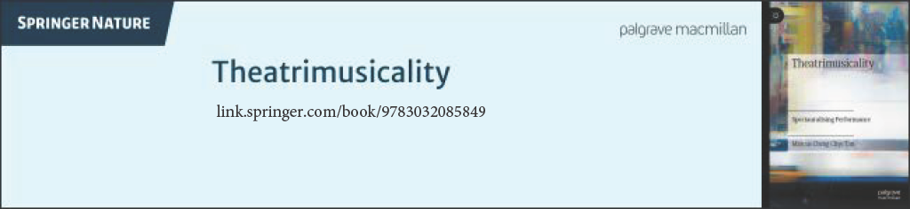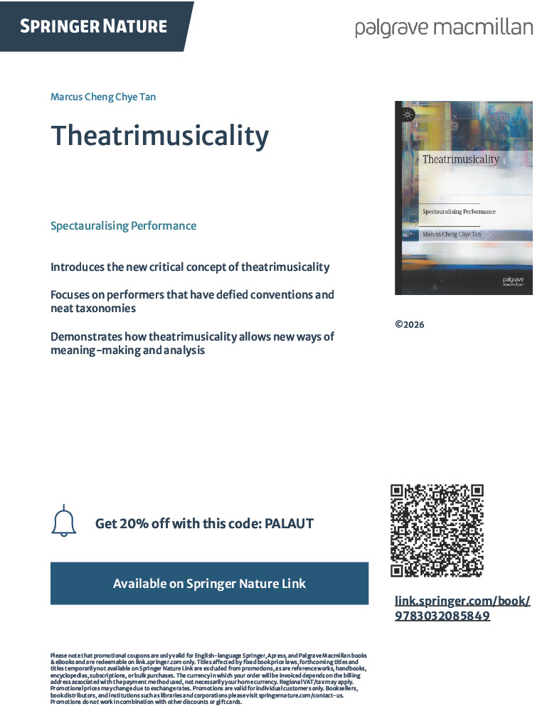 Tan, Marcus Cheng Chye, Theatrimusicality: Spectauralising Performance (Palgrave Macmillan, Feb 2026) https://link.springer.com/book/10.1007/978-3-032-08584-9