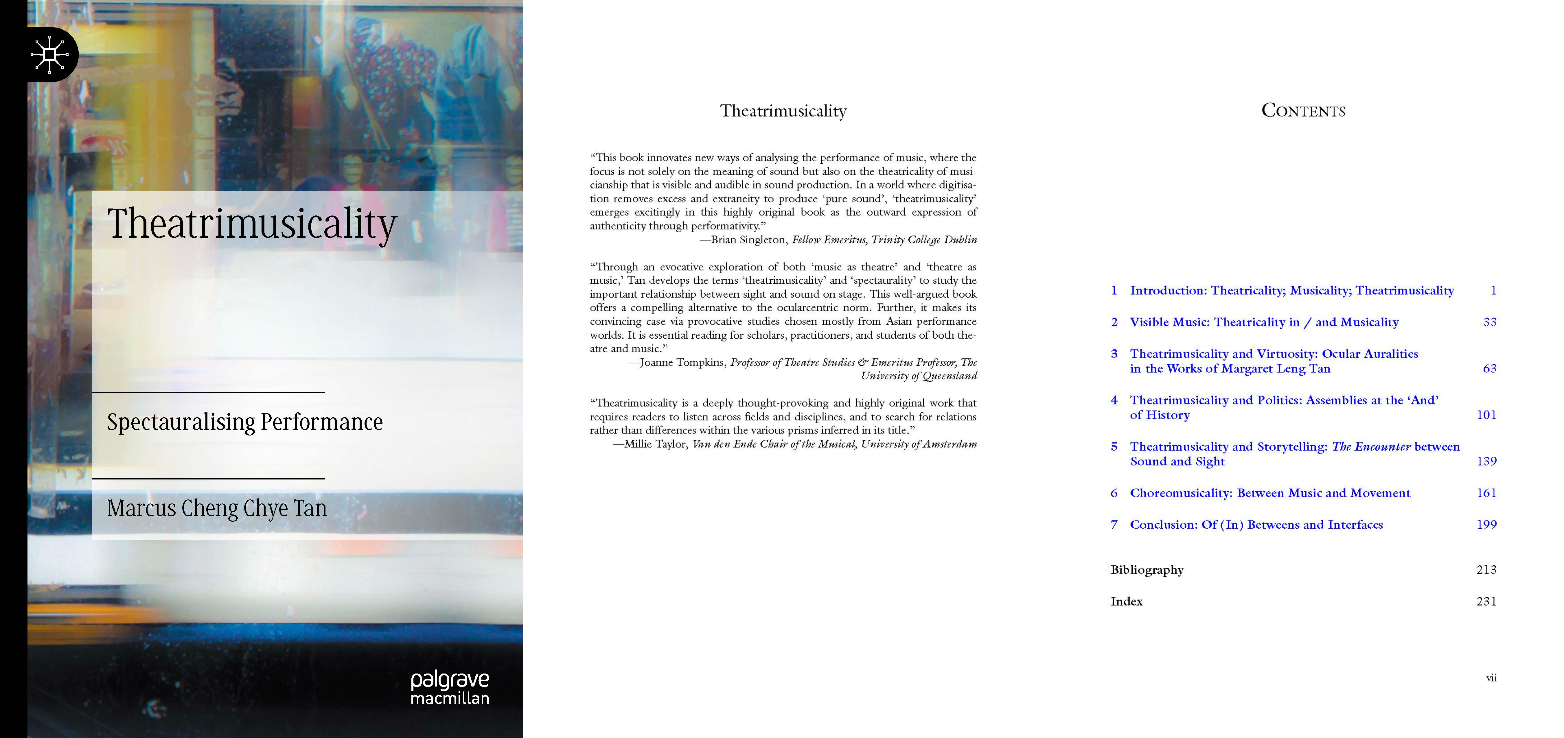 Marcus Cheng Chye Tan, Theatrimusicality: Spectauralising Performance<https://link.springer.com/book/10.1007/978-3-032-08584-9> (Palgrave, 2026)